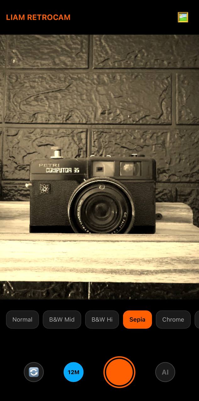 Para disfrutar al 100% de LIAM RetroCam en dispositivos móviles —tanto iOS como Android— es fundamental activar la opción 12 MP desde la pantalla principal de la aplicación. Esta función permite que LIAM RetroCam utilice toda la resolución real de la cámara de tu dispositivo, logrando: